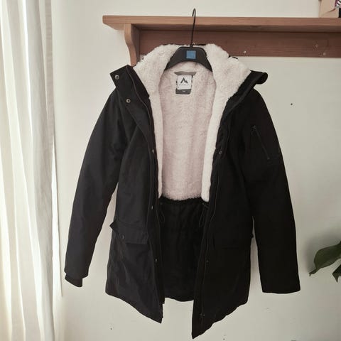 Myydään lasten McKinley parkatoppatakki. Väri tummansininen. Irrotettava huppu. Helma takaa hieman pidempi.