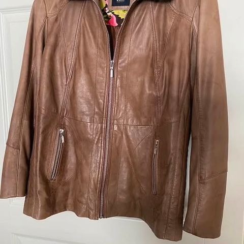 Hyväkuntoinen nahkatalvitakki hupulla .