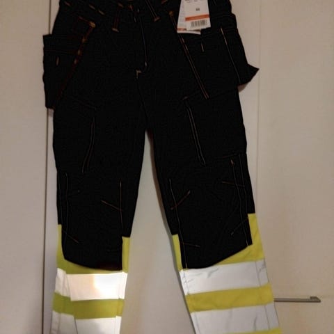 Työhousut mustassa värissä, koko 58. Housuissa useita taskuja ja vahvistuksia polvissa. Soveltuvat työ- ja vapaa-ajan käyttöön.