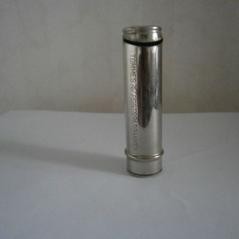 Harvinainen ja vanha kansallisosakepankin putkilipas jossa mittasteikko markan kolikoille 10mk välein viivoilla 200mk asti. Putkeen voi laittaa 1mk kolikoita jotka painettu 1964-1993. Alaosa niitattu yläosa aukeaa, kun ottaa ns. avainrenkaan pois niin saa tyhjättyä. Ajan patinaa ja naarmuja putkiosassa.