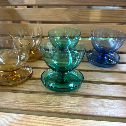ILONA-jälkiruokamaljat. 11 kpl. Vanhat. Paksua lasia. Hyväkuntoiset. Haku tai postitus. Ostaja maksaa postit. Hinta 20€.