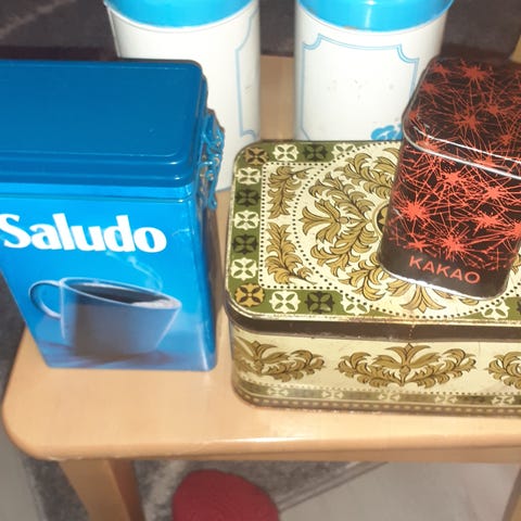 Vanha peltipurkki,Kutsu-kahvi.Sisältä siisti,ulkopuolella kulumajälkiä.