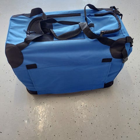 Kankainen hyvin vähän käytetty koiralle käytössä ollut "häkki" / kuljetus kassi. Pituus 60 cm, korkeus 40 cm ja leveys 40 cm. Mukana peite pohjalle.