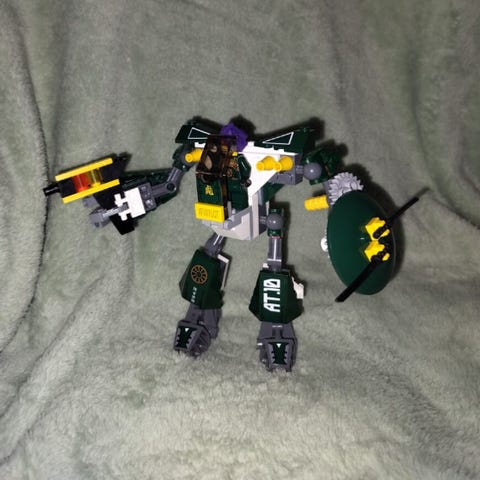 Kuvanmukainen Lego-setti, jonka osat varmistettu varaosaluettelon avulla.