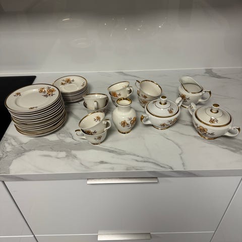 Hyvässä kunnossa oleva astiasto.