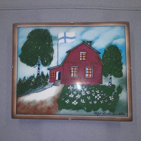Kaunis, pieni talvimaisema Heljä Liukko-Sundströmin tuotantoa, 11,5 x 11,5 cm. Valmis ripustettavaksi seinälle.