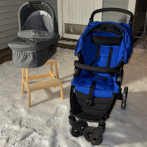 Mukaan: istuinpehmuste talvea varten ja sadesuoja.