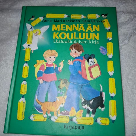 Tehtiin lukeminen mielenkiintoiseksi lapselle, jota se ei oikein kiinnostanut. Vaukirja-kustantamon helmiä. Viimeisellä sivulla lyijykynällä vedetty viivoja, kun on pitänyt yhdistää jätös sen tekijään.