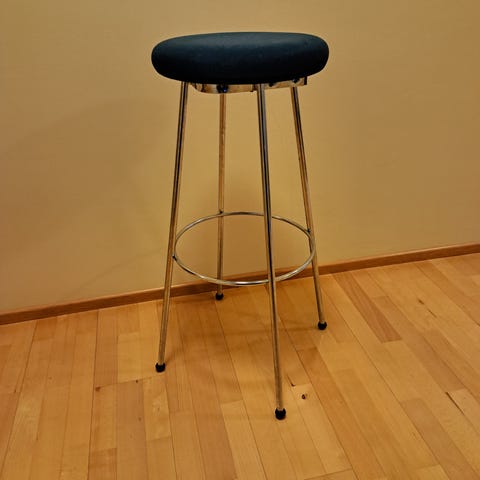 Musta, kevyt metallijakkara.
