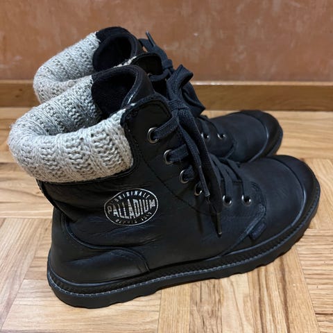 Palladium kengät koossa 39. Olleet vähäisellä käytöllä, hieman pinnassa likaa, mutta varmasti lähtee pesemällä pois. Muuten ei ole kulumia.