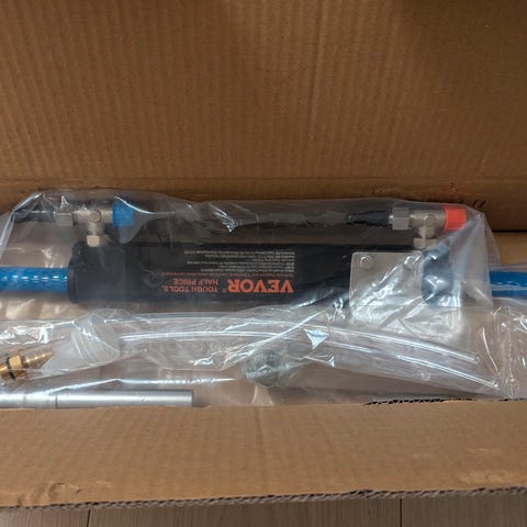 Sisältää: pumppu, 6 metrin letku, ohjaustehostin sylinteri, öljy, täyttö suppilo letkulla, ilmaletku.