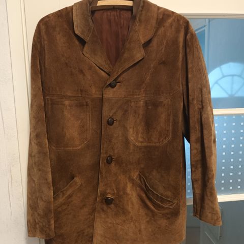 Kotimainen miesten ruskea mokkatakki karvakauluksella. Tikkivuori, koko 52 Käytetty 70-luvulla. Ehjä mutta käytönjälkiä.