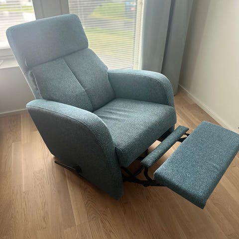 Kaunis ja selkeälinjainen Bell-mekanismituoli, joka on myös pyörivä sekä keinuva.Tuolin mekanismin avulla saa selkänojan kallistettua lepoasentoon ja nostettua jalkatuen ylös. Tämän lisäksi tuoli on myös pyörivä sekä keinuva.