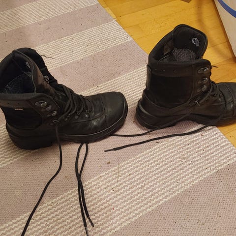Haix Airpower Pro R maihinnousu kengät. Sopii erityisen hyvin armeijan tyyppiseen toimintaan, vaeltamiseen tai erityisen hyviksi talvi kengiksi. Koko 10,5 UK / EU 45 / US 11,5. OVH 200 EUR. (Kuvassa vähän pölyä kun oli hyllyllä, mutta käytetty erittäin vähän). Jos olet nopea myyn 77 € + 7 €.