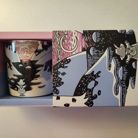 Sopii hyvin vaikka lahjaksi valmistujaisiin. Muuminpäivä 2021 muki 30€.
