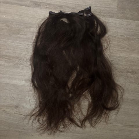 Myydään synteettiset wavy hiuspidennysket, 5 kpl eri väri setti. Pituus noin 35 cm. Clipsi kiinnitys.