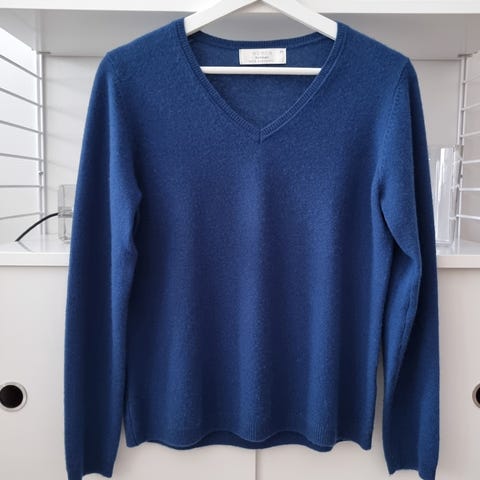 Tummansininen, ruutukuvioinen neulepaita, 100% kashmiria. Koko 42.