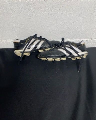 Lasten jalkapallokengät kuntosalille. Vasemmassa kengässä pieniä halkeamia. Koko 36