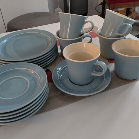 Kuppeja 9 kpl, asetteja 6 kpl, sokerikko ja kermakko