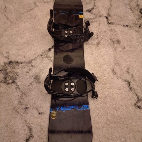 Siistissä kunnossa, yhdellä laskijalla ollut lauta siteineen seuraavalle käyttäjälle.