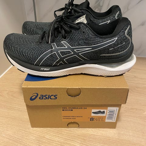 Käyttämättömät, 42,5 koon (sopinee 41-42,5 jaloille?) kerran sisällä kotona jalkaan sovitetut ja itselle pieneksi todetut suositut Asics Gel-Cumulus 24 TR juoksukengät TR pohjalla, joka takaa paremman pidon myös maastossa ja lumella/jäällä ja kohokuvionsa takia ei kulu niin nopeasti tasaiseksi ja liukkaaksi kuten juoksukengillä tapana. Nämä Asics malliston juoksukengät myydään aina loppuun suosionsa ansiosta, siksi itsekin halusin kokeilla ja itse kengät tuntuivat oikein mukavilta jalassa, mutta koko oli hieman väärä itselleni.