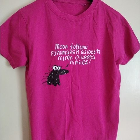 Edessä ja vasemman hihan resorissa pientä tahraa, näkyvät kuvissa.