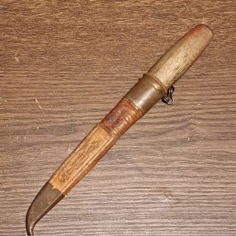 Vanha Fiskars puukko, pituus 20cm, terä 9cm.