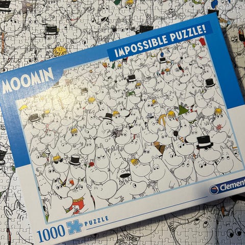 Myydään muutaman kerran koottu Moomin Impossible puzzle. 1000 palaa. Kaikki palat tallella. Laatikossa vähän kuluma jälkiä.