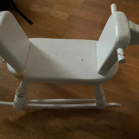 Myydään upea, vintage käsityönä tehty puinen keinuhevonen, klassikko,