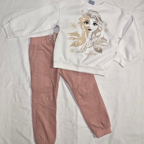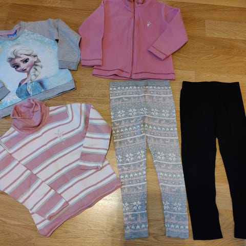 Gugguu tunika, haaleeta tahraa jossain kohtaa. Frozen leggingsit, pientä tahraa. lindex neule. Koko 110