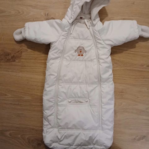 Vaaleanpunainen, vuorillinen Jacky Baby -kaukalopussi, koko 56. Meillä toiminut heti vastasyntyneestä.