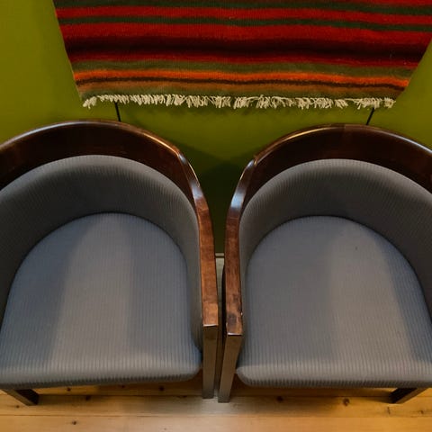 Koot: Nojatuoli L72 cm S80-110 cm K107 cm. Rahi L47 cm S50 cm K43 cm