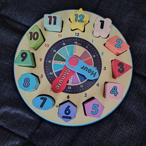 Myydään uutena ostettu, erittäin hyväkuntoinen puinen kello jolla lapsi oppii näppärästi kellonajat.