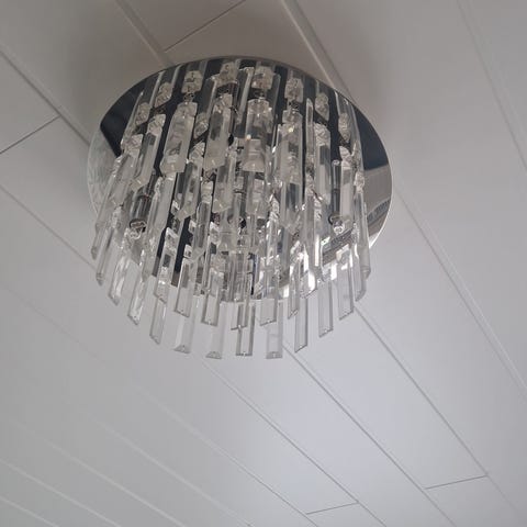 Nätti 145mm halkasialtaan viiskytluvun kattovalaisin,ehjä kunnostettu,käyttökunnossa.