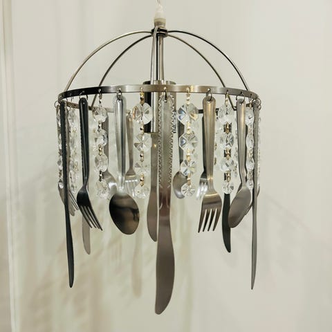 Hopearunkoinen kattovalaisin esimerkiksi ruokapöydän päälle.