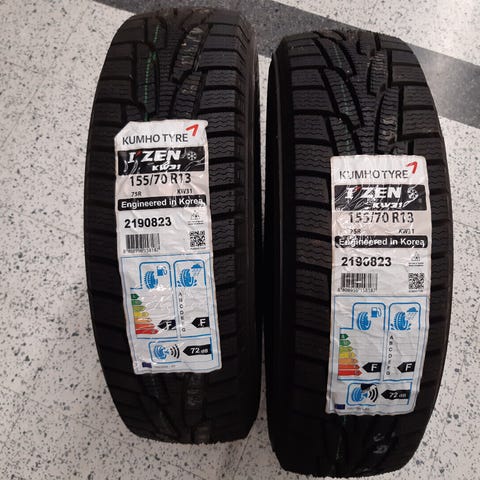 Sarja uusia ajamattomia 155/80r13" kitkarenkaita.