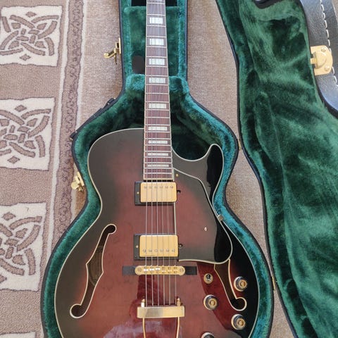 Ibanez AF75TDG-IV Paksukoppainen, täysin avoin Jazzkitara, eli soundi on pehmeä ja syvä.
