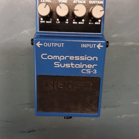 Boss CS-3 compressor/sustainer. Compresses louder signals while boosting lower signals for smooth sustain without degrading the original sound quality. Onboard EQ for precise tonal control and low-noise design for super-quiet operation.