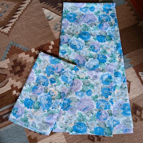 Puuvillaiset kukkaverhot 2 kpl sininen