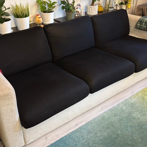 Meillä kissatalous, mutta kissat eivät ole päässeet huoneeseen missä sohva sijaitsee.