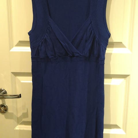 Kuvanmukainen tummansininen Esmara-mekko Lidlista. Mukavaa pehmeää paksuhkoa trikookangasta. Sivutaskut. Pituus n. 90 cm. Mahdolliset postikulut 8e.