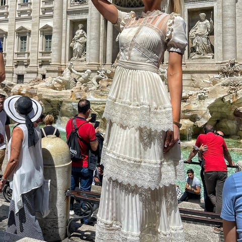 L'atiste by Amy tummansininen pitsimekko, midi-pituinen. Koko S. Kaksinkertaista kangasta: alla beige vuorikangas noin reiteen asti ja päällä pitsi. Ohuet olkaimet. Takana vetoketju. "Runsas" helma ja taskut sivuilla. Hyvässä kunnossa.