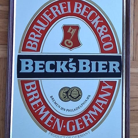 Sininen A IV olut peilitaulu 1980-luvulta. Kestävä metallikehys.