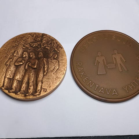 Vanhoja pöytämitaleita. Kunnallinen itseh. Sos.huollon, Säästöpankin jne.