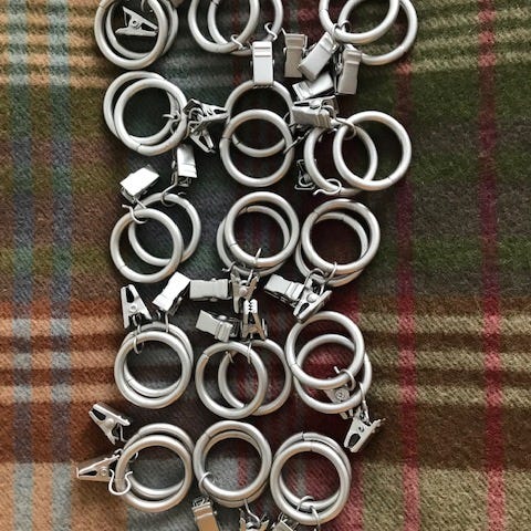 Tarpeettomaksi jäänyt verhon klipsit. Vain nouto. Koko paketti 15 euro. Saa tarjota.