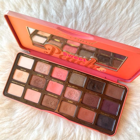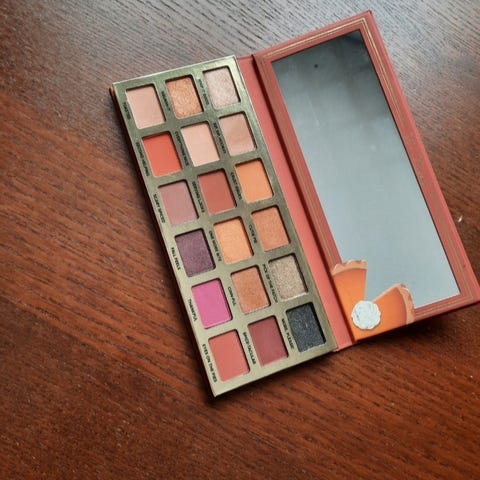 Too Faced just peachy mattes luomiväripaletti, muutamaa sävyä kokeiltu ja osa koskemattomia