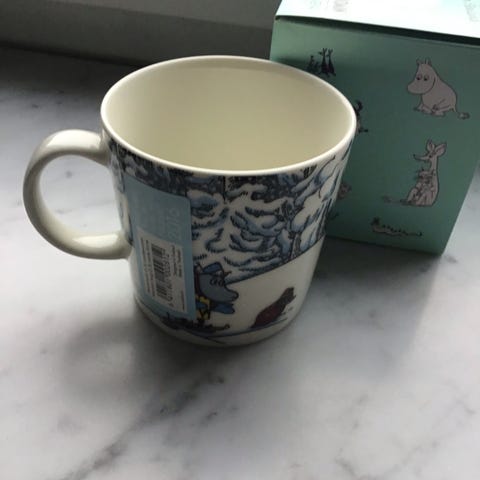 Myydään uusi Muumimukki Lumihevonen 2016. Tarra on paikoillaan.