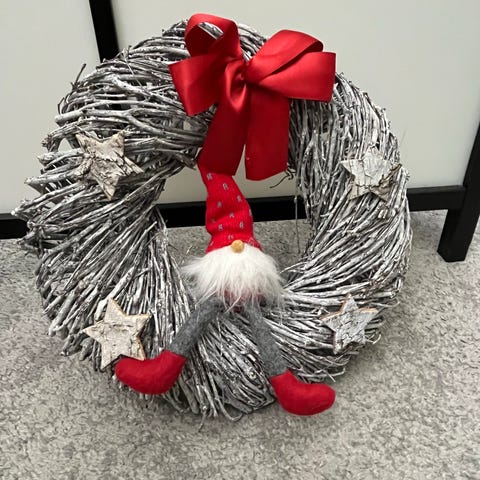 Ostettu Kiinasta paikan päältä. Vähän turhan pramea kuitenkin meille. Ollut vain lyhyelti käytössä, uudenveroinen. Tällä saa oveen amerikkalaista joulu-tunnelmaa.