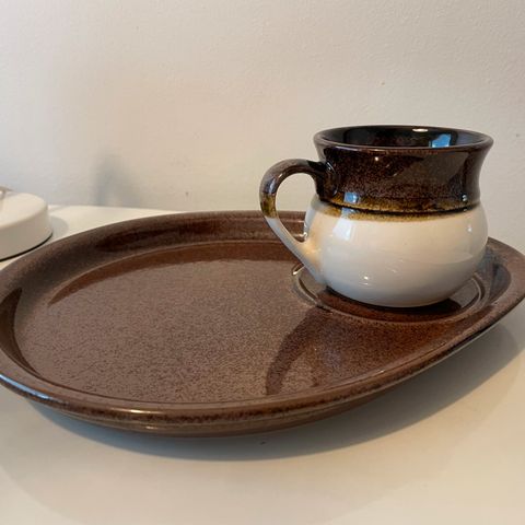 Kermansaven aamiaissetti; muki + lautanen.