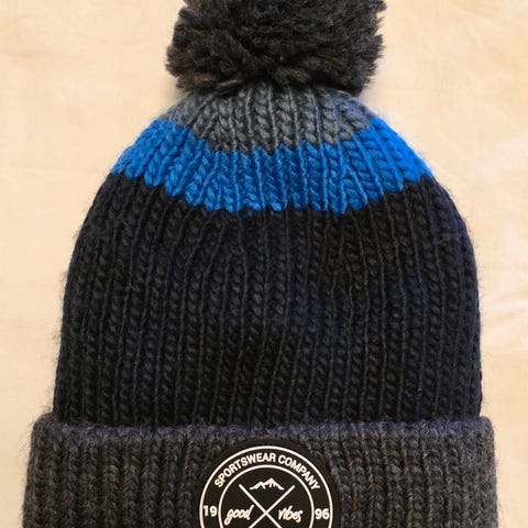 Valkoinen/ pinkki-turkoosi tupsuinen pipo